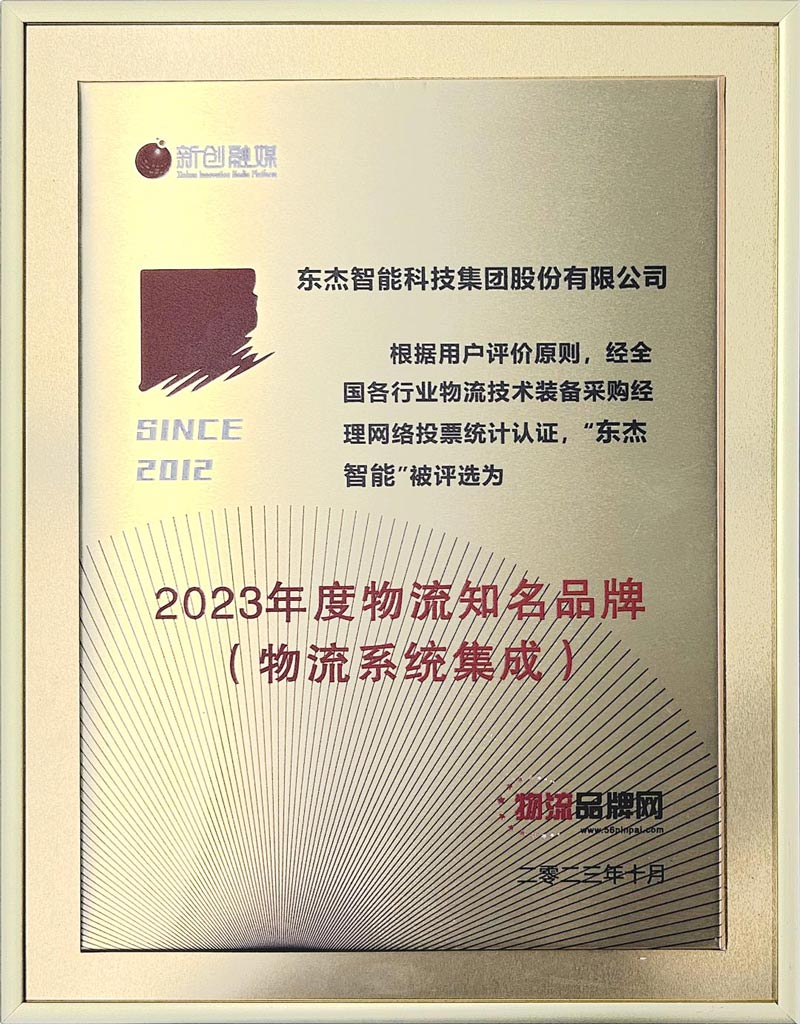 近日,東杰智能憑借實力雄厚的物流系統集成力、卓越超前的研發創新力以及多行業豐富的實踐力,榮獲2023年物流知名品牌獎,并入選2023年鋼鐵行業智能制造解決方案推薦目錄。